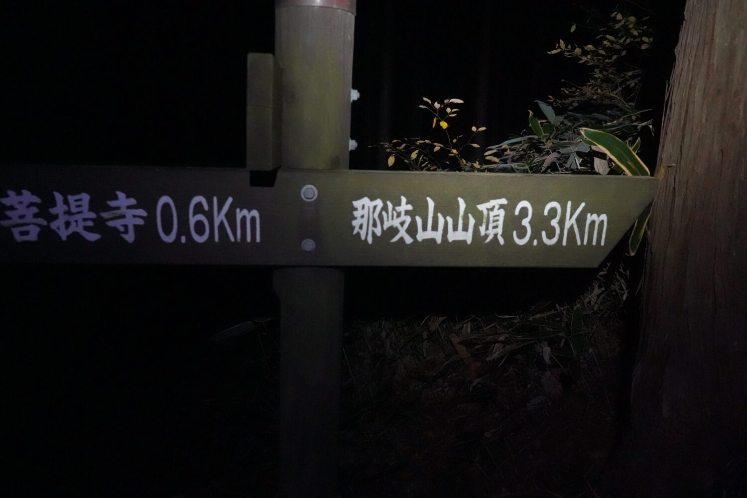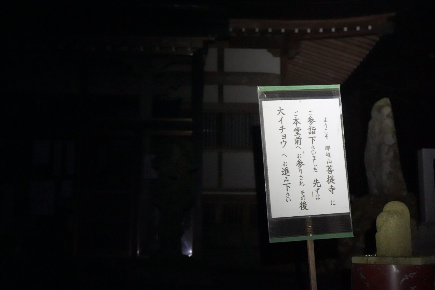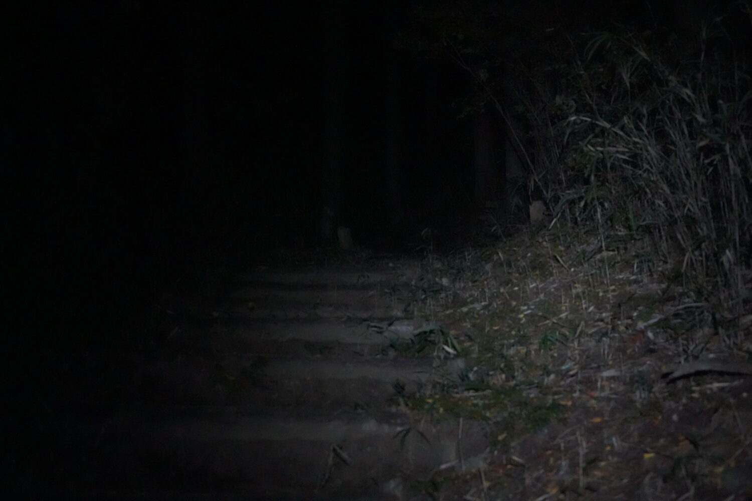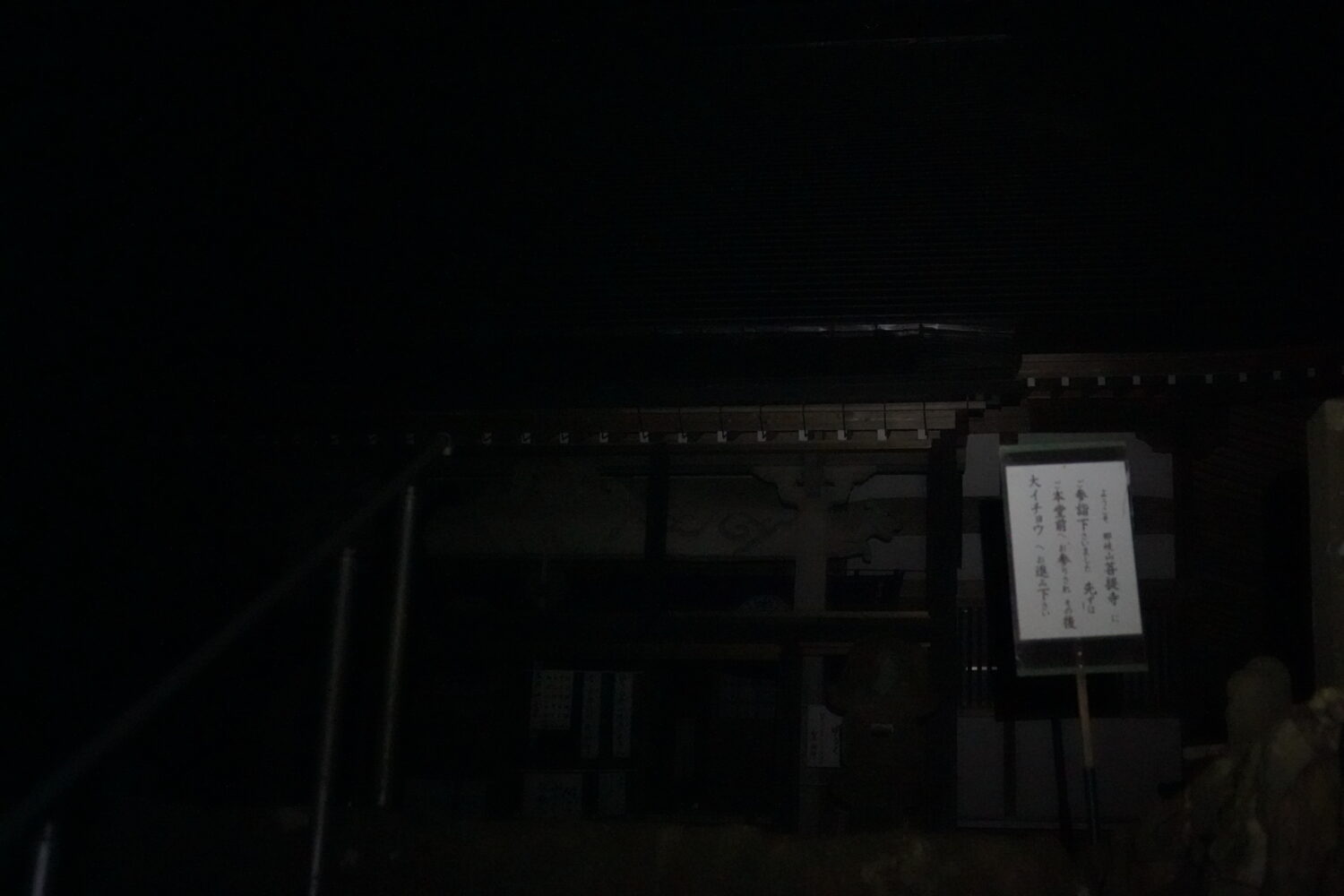 漆黒の闇の菩提寺を通り抜けて登山道を目指します。