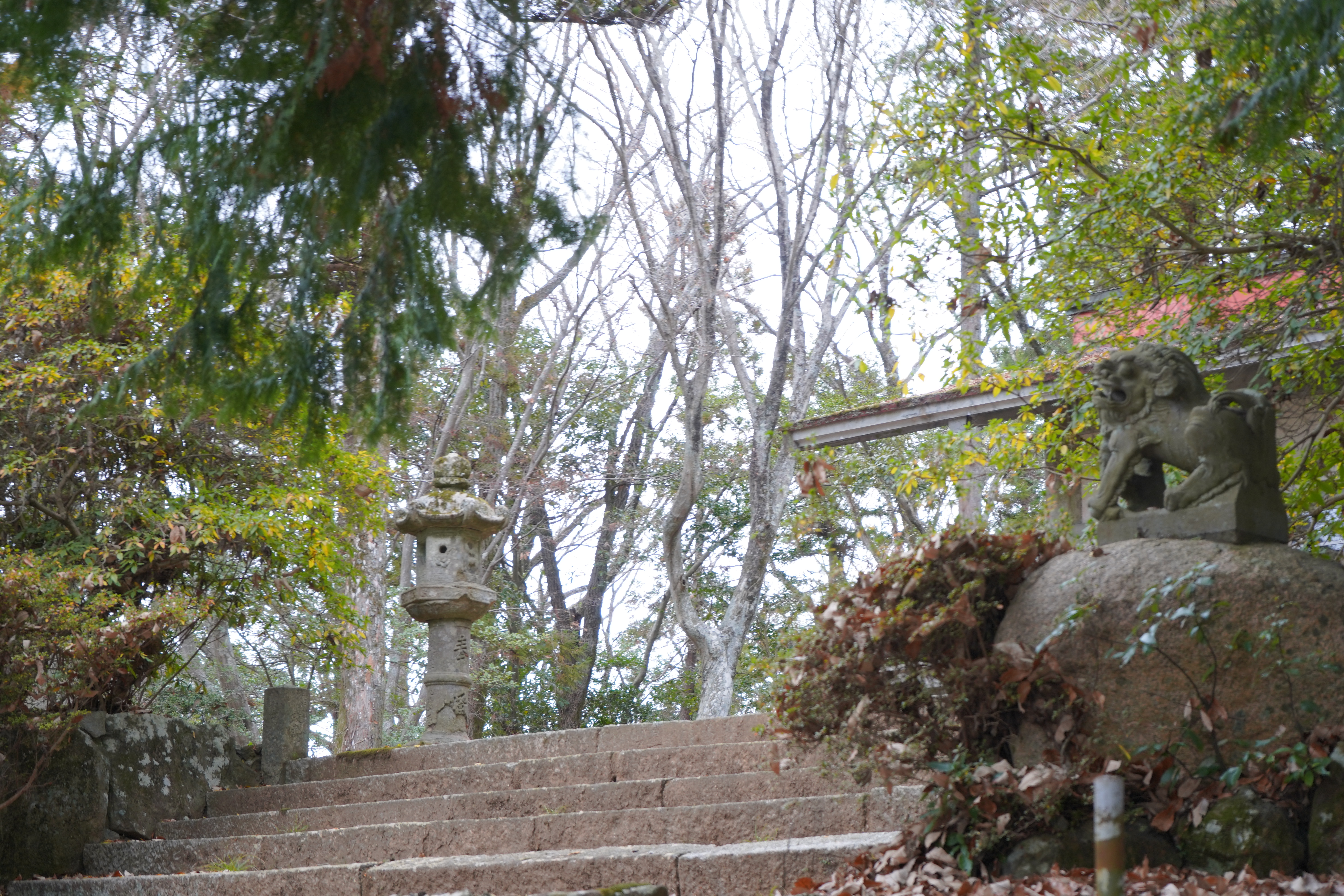 神社があって聖母マリア的な銅像🤔