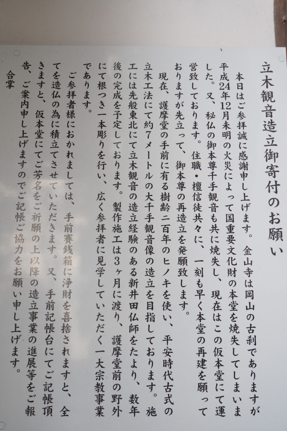 看板に書いてあります通り